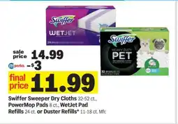 Meijer Swiffer Sweeper Dry Cloths, PowerMop Pads, WetJet Pad Refills or Duster Refills offer