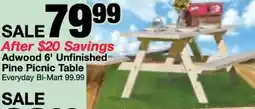 2Bi-Mart Adwood 6' Unfinished Pine Picnic Table offerAdwood 6' Unfinished Pine Picnic TableBi-Mart$99.99$79.99$20.00 Discount14 April 202627 April 2026 View offer