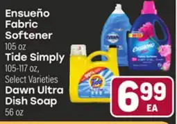 Tony’s Fresh Market Ensueño Fabric Softener, 105oz Tide Simply 105-117oz, Dawn Ultra Dish Soap, 56oz offer