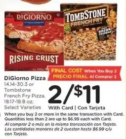 1Kroger DiGiorno Pizza or Tombstone French Fry Pizza offerDiGiorno Pizza or Tombstone French Fry PizzaKroger$11.0018 March 202624 March 2026 View offer