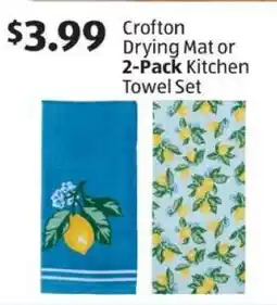 1Aldi Crofton Drying Mat or 2-Pack Kitchen Towel Set offerCrofton Drying Mat or 2-Pack Kitchen Towel SetAldi$3.9911 March 202617 March 2026 View offer