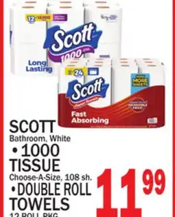 C Town SCOTT Bathroom, White •1000 TISSUE Choose-A-Size, 108 sh. •DOUBLE ROLL TOWELS 12 ROLL PKG offer