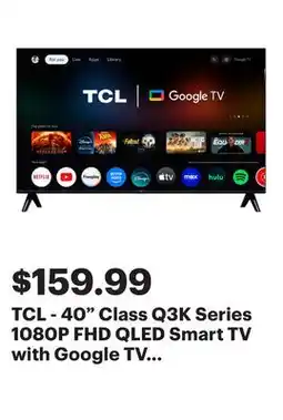 | 4 | TCL - 40 Class Q35F Series 1080P FHD QLED Smart TV with Fire TV (2025) | Best Buy | $99.99 | 21 April 2026 | 27 April 2026 | View offer | |||