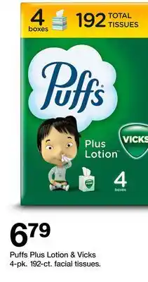| Puffs Plus Lotion with Vicks 4-pk. facial tissue | Target | $6.79 | 18 January 2026 | 24 January 2026 | |||