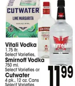 Vitali Vodka 1.75 ltr. Smirnoff Vodka 750 ml. Cutwater 4 pk., 12 oz. Cans