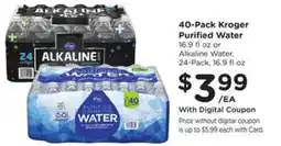 40-Pack Kroger Purified Water or 24-Pack Alkaline Water