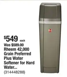 Rheem 42,000 Grain Preferred Plus Water Softener for Hard Water and Iron Reduction
