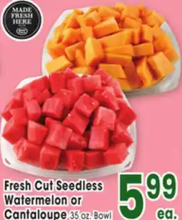 Jewel-Osco Fresh Cut Seedless Watermelon, Cantaloupe Honeydew offerFresh Cut Seedless Watermelon, Cantaloupe HoneydewJewel-Osco$4.9926 December 202501 January 2026