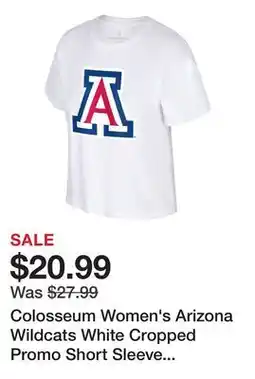 | 1 | Colosseum Women's Arizona Wildcats White Cropped Promo Short Sleeve T-Shirt | Dick's Sporting Goods | $27.99 | $20.99 | $7.00 Discount | 22 April 2026 | 28 April 2026 | View offer | |