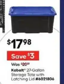 Lowe's 27-Gallon Storage Tote with Latching Lid offer