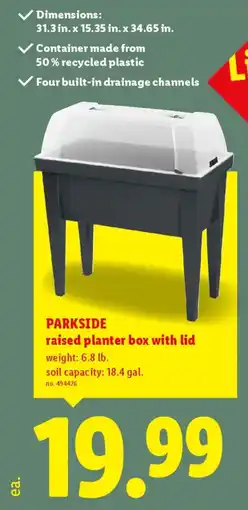 1Lidl Parkside raised planter box with lid offerParkside raised planter box with lidLidl$19.9925 February 202604 March 2026 View offer