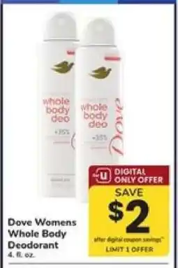 1Safeway Dove Womens Whole Body Deodorant offerDove Womens Whole Body DeodorantSafeway$2.0003 April 202616 April 2026 View offer