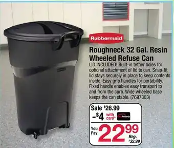 Roughneck 32 Gal. Resin Wheeled Refuse Can deal in the weekly ad of Ace Hardware