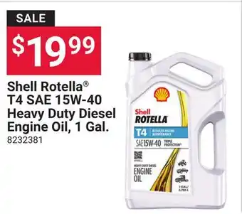 The price of Shell Rotella T4 SAE 15W-40 Heavy Duty Diesel Engine Oil, 1 Gal can be found at the top of the page, together with the dates during which the offer is available. You can also check the price in the current Ace Hardware flyer or on the Ace Hardware website. Promotional offers assure you of buying Ace Hardware products at the lowest price.