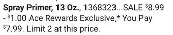 Zinsser Spray Primer 13 Oz deals and online offers from the current Ace Hardware weekly ad