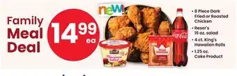 8 Piece Dark Fried or Roasted Chicken Reser's 16 oz. salad 4 ct. King's Hawaiian Rolls 1.25 oz. Coke