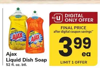 The price of Ajax Liquid Dish Soap can be found at the top of the page, together with the dates during which the offer is available. You can also check the price in the current ACME weekly ad or on the ACME website. Promotional offers assure you of buying ACME products at the lowest price.