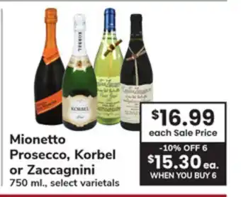 Mionetto Prosecco, Korbel or Zaccagnini deal in the weekly ad of ACME