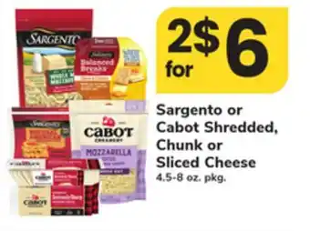 Sargento or Cabot Shredded, Chunk or Sliced Cheese