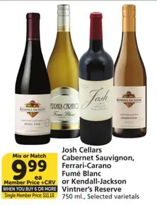 Josh Cellars Cabernet Sauvignon, Ferrari-Carano Fumé Blanc or Kendall-Jackson Vintner's Reserve deal in the weekly ad of Albertsons