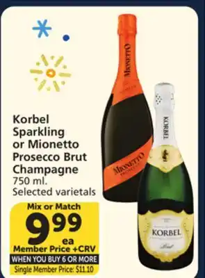 This offer is available in various stores, view all products to get the cheapest Korbel Sparkling or Mionetto Prosecco Brut Champagne. If you'd like to find out whether this product has a bigger discount in another store, check the category 'Grocery'. You may also find these offers interesting: Korbel Sparkling or Mionetto Prosecco Brut Champagne, Korbel Sparkling or Mionetto Prosecco Brut Champagne & Korbel Brut Champagne.