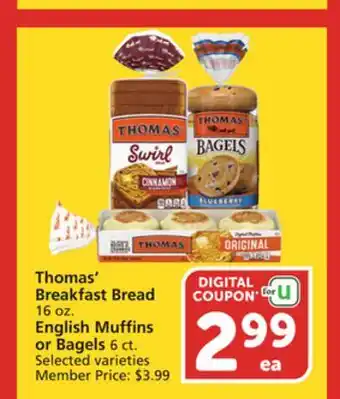Thomas' Breakfast Bread 16 oz. English Muffins or Bagels 6 ct Deal at Albertsons