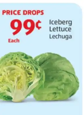 This offer is available in various stores, view all products to get the cheapest Iceberg Lettuce. If you'd like to find out whether this product has a bigger discount in another store, check the category 'Grocery'. You may also find these offers interesting: Organic Iceberg Lettuce, Iceberg Head Lettuce & Kroger Shredded Iceberg Lettuce.