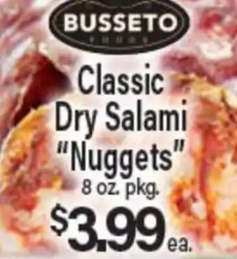 Angelo Caputo's Fresh Market offers a wide collection of products, besides the Classic Dry Salami Nuggets. Keep an eye on the weekly weekly ad to find the best offers and promotions. Besides Classic Dry Salami Nuggets, you can also find the following offers: BUSSETO FOODS Antipasto Platter, Classic Dry Salami Nuggets, Del Duca Hot or Sweet Dry Salami & Gravy Train Beefy or Meaty Classic Dry Dog Food.