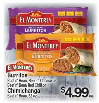 El Monterey Burritos Beef n' Bean, Beef n' Cheese or Beef n' Bean Red Chili or Chimichanga Deal at Angelo Caputo's Fresh Market
