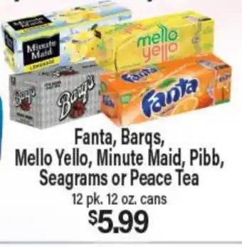 Fanta, Barqs, Mello Yello, Minute Maid, Pibb, Seagram's or Peace Tea