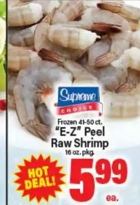 This offer is available in various stores, view all products to get the cheapest Frozen 41-50 ct. E-Z Peel Raw Shrimp. If you'd like to find out whether this product has a bigger discount in another store, check the category 'Grocery'. You may also find these offers interesting: Frozen 16-20 ct. Jumbo E-Z Peel Raw Shrimp, 16/20 ct Easy Peel Raw or 31/40 ct Cooked Shrimp & India Farmed 16-20 ct. EZ-Peel Raw Shrimp.