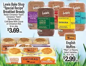 Lewis Bake Shop Special Recipe Breakfast Breads, Thomas English Muffins Discount at Angelo Caputo's Fresh Market