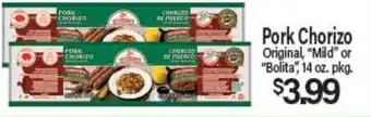 This offer is available in various stores, view all products to get the cheapest Pork Chorizo. If you'd like to find out whether this product has a bigger discount in another store, check the category 'Grocery'. You may also find these offers interesting: Premium Pork Chorizo or Salvadorean Chorizo, Cacique Beef or Pork Chorizo Sausage & Cacique Beef or Pork Chorizo Sausage.