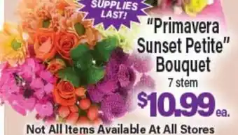 In which store will Primavera Sunset Petite Bouquet be on sale next week? These are some of the questions we get asked a lot. It’s only normal, nobody likes to pay too much! Our team keeps an eye on all deals and lists them online as soon as possible. So you can customize your (shopping) list with this week's offers and those of next week. Make sure to check next week’s Angelo Caputo's Fresh Market ad, some of the specials are only available next week or online.Frequently asked questions about Primavera Sunset Petite Bouquet