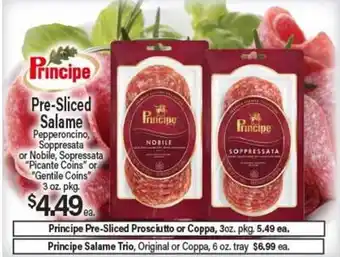 Principe Pre-Sliced Prosciutto or Coppa, 3oz. pkg. 5.49 ea deals and online offers from the current Angelo Caputo's Fresh Market weekly ad