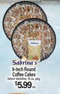 Sabrina's 9-Inch Round Coffee Cakes offers and online specials, straight from the current Angelo Caputo's Fresh Market ad