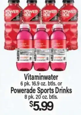 Vitaminwater 6 pk. 16.9 oz. btls. or Powerade Sports Drinks 8 pk. 20 oz. btls