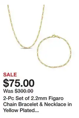 Current 2-Pc Set of 2.2mm Figaro Chain Bracelet & Necklace in Yellow Plated Sterling Silver deal at Belk from 2-02 until 8-02.