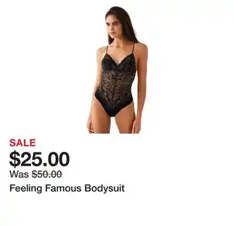 This offer is available in various stores, view all products to get the cheapest Feeling Famous Bodysuit. If you'd like to find out whether this product has a bigger discount in another store, check the category 'Department Stores'. You may also find these offers interesting: Famous Dave's pickles, Nathan's Famous Franks & Nathan's Famous mustard.