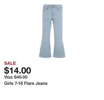 This offer is available in various stores, view all products to get the cheapest Girls 7-16 Flare Jeans. If you'd like to find out whether this product has a bigger discount in another store, check the category 'Department Stores'. You may also find these offers interesting: Levi's Girls Flare Denim, Girls 4-12 Jumping Beans Ribbed Flare Leggings & Old Navy High-Waisted Wow Flare Jeans.