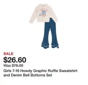 Girls 7-16 Howdy Graphic Ruffle Sweatshirt and Denim Bell Bottoms Set deals and online offers from the current Belk weekly ad