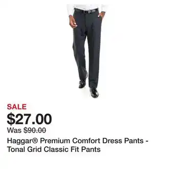 The price of Haggar Premium Comfort Dress Pants - Tonal Grid Classic Fit Pants can be found at the top of the page, together with the dates during which the offer is available. You can also check the price in the current weekly ad or on the Belk website. Promotional offers assure you of buying Belk products at the lowest price.