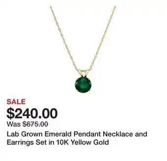 Lab Grown Emerald Pendant Necklace and Earrings Set in 10K Yellow Gold offers and online specials, straight from the current Belk ad