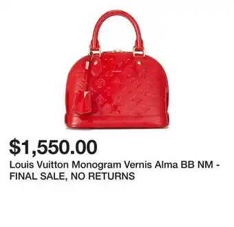 Louis Vuitton Monogram Vernis Alma BB NM - FINAL SALE, NO RETURNS deal in the weekly ad of Belk