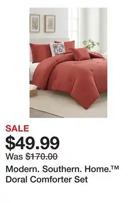 This offer is available in various stores, view all products to get the cheapest Modern. Southern. Home. Doral Comforter Set. If you'd like to find out whether this product has a bigger discount in another store, check the category 'Department Stores'. You may also find these offers interesting: Modern. Southern. Home. Tan Embroidered Sheet Set, Modern. Southern. Home. Embroidered Scalloped Sheet Set & ASHLEY COOPER 6-7 Piece Comforter Set.