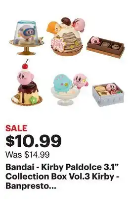 Check for the cheapest product among all the offers! If you want to know if Best Buy has the highest discount for Bandai - Kirby Paldolce 3.1 Collection Box Vol.3 Kirby - Banpresto Paldolce Collection - Blind Box, compare it on the Topic page or with other stores.