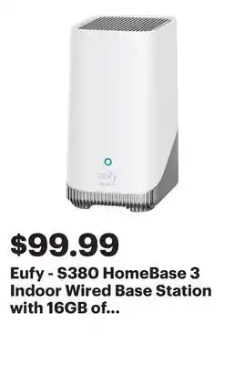 The price of Eufy - S380 HomeBase 3 Indoor Wired Base Station with 16GB of Storage Built In - White can be found at the top of the page, together with the dates during which the offer is available. You can also check the price in the current Best Buy weekly ad or on the Best Buy website. Promotional offers assure you of buying Best Buy products at the lowest price.