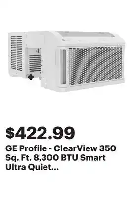 The GE Profile - ClearView 350 Sq. Ft. 8,300 BTU Smart Ultra Quiet Window Air Conditioner - White is now on sale at Best Buy, valid from 21-04-2026 to 27-04-2026. Check out the latest Best Buy weekly ad for more exclusive offers. Order GE Profile - ClearView 350 Sq. Ft. 8,300 BTU Smart Ultra Quiet Window Air Conditioner - White online via the Best Buy website or buy it at a nearby store. At Adspecials.us, you'll always find the best GE Profile - ClearView 350 Sq. Ft. 8,300 BTU Smart Ultra Quiet Window Air Conditioner - White deals. Compare the current offers to see if GE Profile - ClearView 350 Sq. Ft. 8,300 BTU Smart Ultra Quiet Window Air Conditioner - White will be featured in next week’s weekly ad. We post the weekly ads quickly, so you can plan your shopping smartly and stay updated on the latest GE Profile - ClearView 350 Sq. Ft. 8,300 BTU Smart Ultra Quiet Window Air Conditioner - White deals, discovering which stores have the best offers. Adjust your shopping list and check out the Best Buy weekly ad for next week for exclusive in-store promotions.Frequently asked questions about GE Profile - ClearView 350 Sq. Ft. 8,300 BTU Smart Ultra Quiet Window Air Conditioner - White