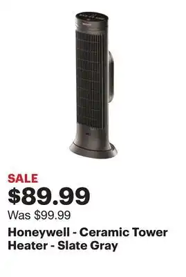 The price of Honeywell - Ceramic Tower Heater - Slate Gray can be found at the top of the page, together with the dates during which the offer is available. You can also check the price in the current Best Buy weekly ad or on the Best Buy website. Promotional offers assure you of buying Best Buy products at the lowest price.