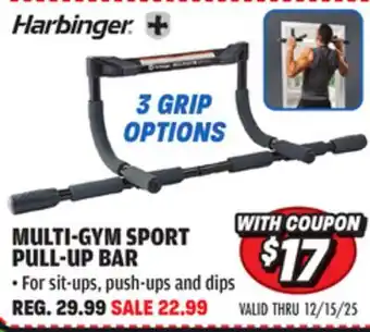 Now on specials at Big 5: Harbinger Multi-Gym Sport Pull-Up Bar✅ Valid in the weekly ad from 12-12 to 15-12.